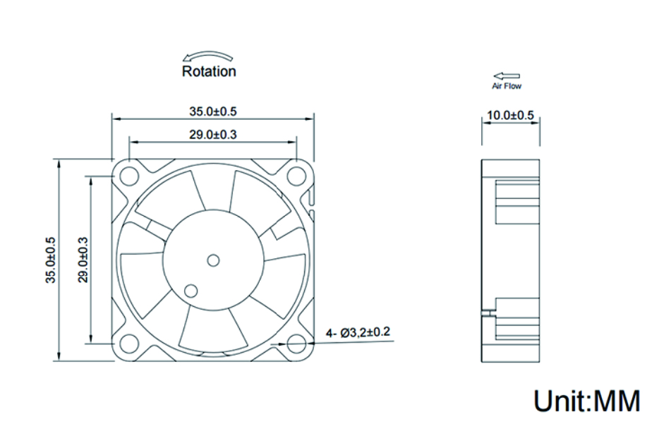 | 風(fēng)扇框體材料 | PA塑料UL94 V0 |